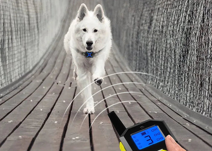 Le dispositif léger se fixe confortablement autour du cou de votre animal et s'active grâce à une télécommande pratique d'une portée impressionnante de 800 mètres. Imaginez pouvoir communiquer clairement avec votre chien même à distance !